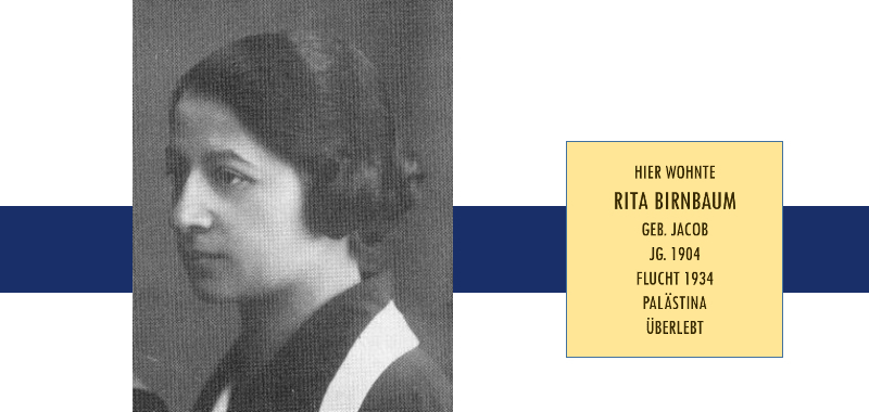 Rita Birnbaum war die Tochter des Rheingönheimer Kantors Joseph Jacob. 1934 floh sie mit ihrem Mann nach Palästina. 1969 kehrte sie nach Deutschland zurück.