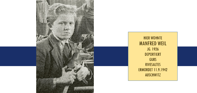 Manfred Weil war 14 Jahre alt, als er im Oktober 1940 mit seinen Eltern nach Gurs in Südfrankreich deportiert wurde. Von dort wurde er 1942 über Drancy nach Auschwitz gebracht und dort ermordet.